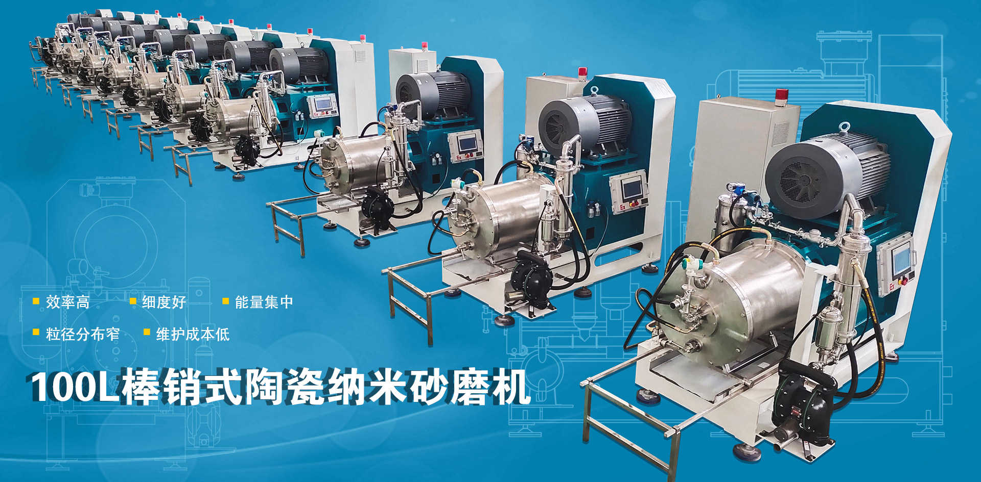 工業級棒銷動態砂磨機廣泛應用于微米級亞微米級、納米級的中高粘度物料的研磨,動靜環間隙出料,棒銷轉子結構滿足不同尺寸、不同研磨細度以及不同研磨工藝的生產需求 臥式砂磨機,適用于對研磨精度要求高的化工物料,連續封閉式高效率濕式研磨分散。 輸送泵有氣動隔膜泵和圓弧泵、刮板泵研磨介質為氧化錯珠,根據物料及細度要求選擇介質大小